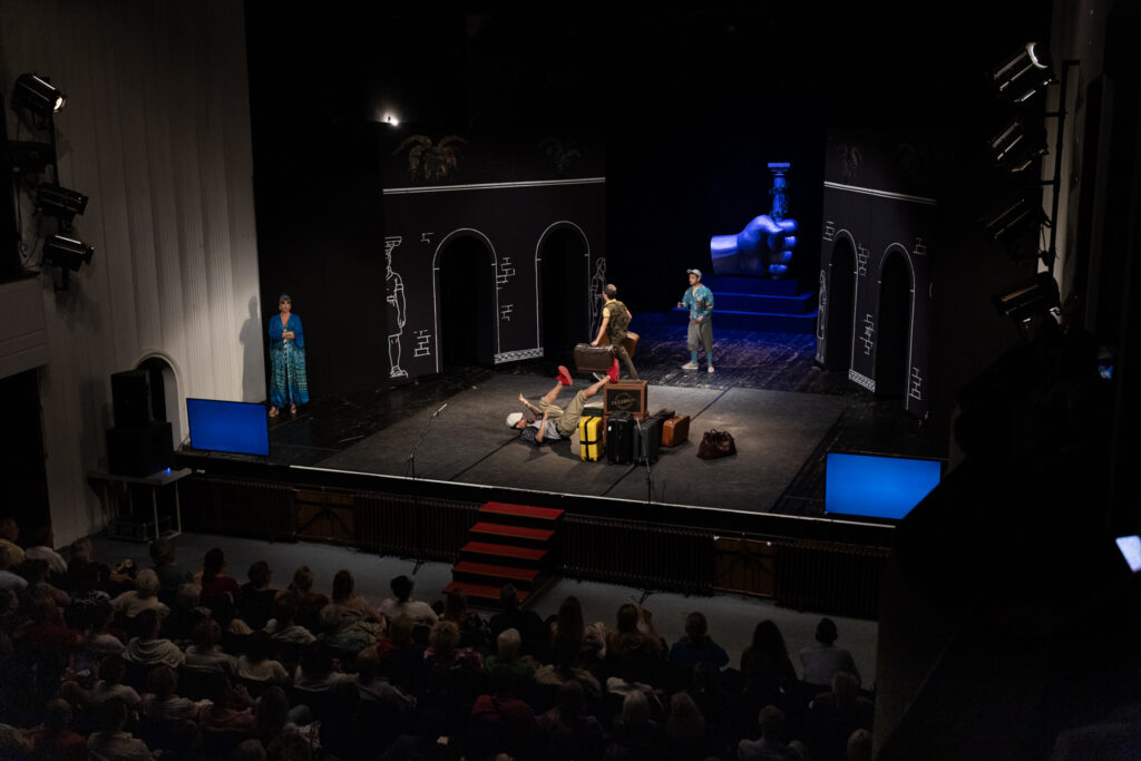 Актерите Марјан Наумов, Јована Спасиќ, Лазар Христов, Марко Гверо, Вукашин Јовановиќ, Соња Стамболџиоска, Нејц Језерник, Јулита Кропец и Лазар Николиќ, секој зборувајќи на својот мајчин јазик, создадоа возбудлива и духовита енергија која предизвика искрена реакција кај публиката.