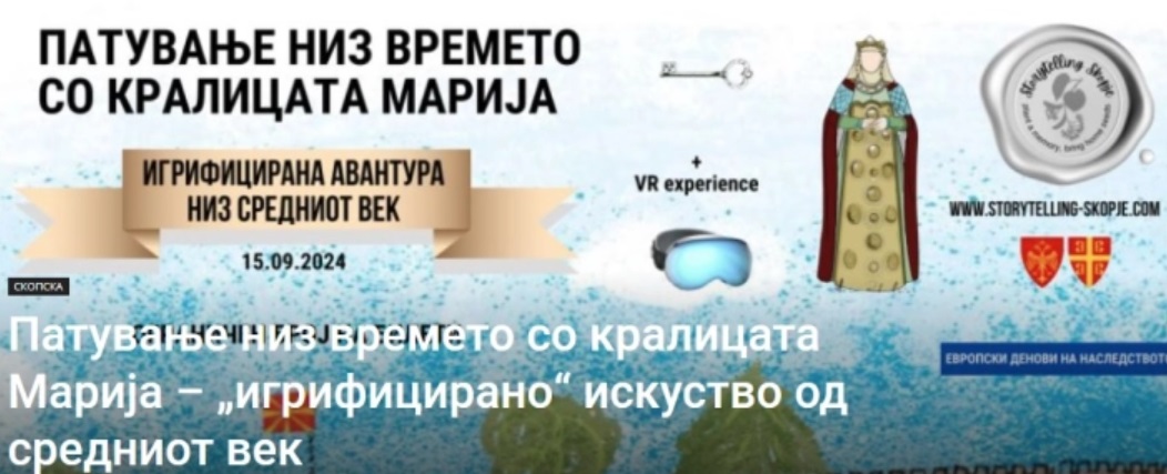 „Ова игрифицирано искуство е исполнето со мистерија, загатки и разни потраги кои се случуваат на Скопското кале, правејќи ја историјата жива на забавен и интерактивен начин за сите возрасти. За комплетно уживање, на крајот од авантурата ќе следи бесплатно VR искуство. Ова искуство ќе им овозможи на посетителите со помош на VR наочари низ видео игра да се движат низ виртуелно реконструираната средновековна палата на Скопско кале и да решаваат загатки, за да може да го пронајдат тајниот предмет којшто ѝ припаѓал на средновековната владетелка Марија Палеологова“, велат организаторите.