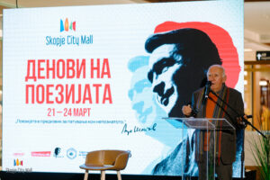 „Ова скопско сврталиште во кое денес сме заедно, ова место на секојдневни средби и дружби, кое обично ни нуди роба која ги задоволува нашите елементарни желби и потреби – од леб до алишта, од вода до покуќнина… – денес станува место за средба и дружба со поезијата. Нè потсетува колку сме всушност желни за поезија, колку таа претставува човечка потреба“, истакна првенецот на Македонскиот народен театар.
