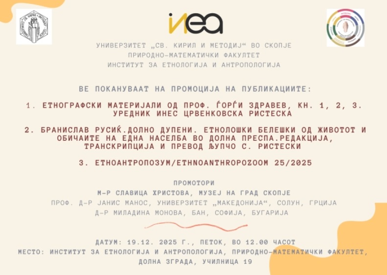 Промотори на изданијата ќе бидат Славица Христова, етнолог од Музеј на град Скопје, Јанис Манос од Универзитетот „Македонија“ во Солун, и Миладина Монова од Бугарската академија на науки од Софија.
