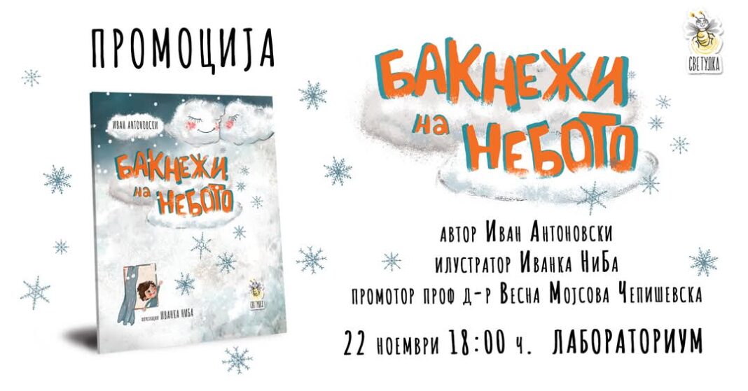 „Сѐ убаво што постои на светов, создадено е од љубов“ е мотото на денешната промоција на најновото издание „Бакнежи на небото“ од Иван Антоновски со илустрации на Иванка НиБа. Промотор на сликовницата е проф д-р Весна Мојсова Чепишевска.