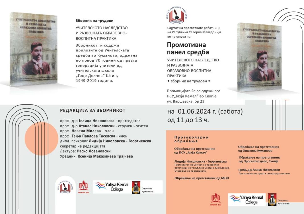 Зборникот ќе биде промовиран утре во 11,00 часот во просториите на ПСУ„Јахја Кемал“ во Скопје, информираат од Сојузот на просветни работници на Македонија.