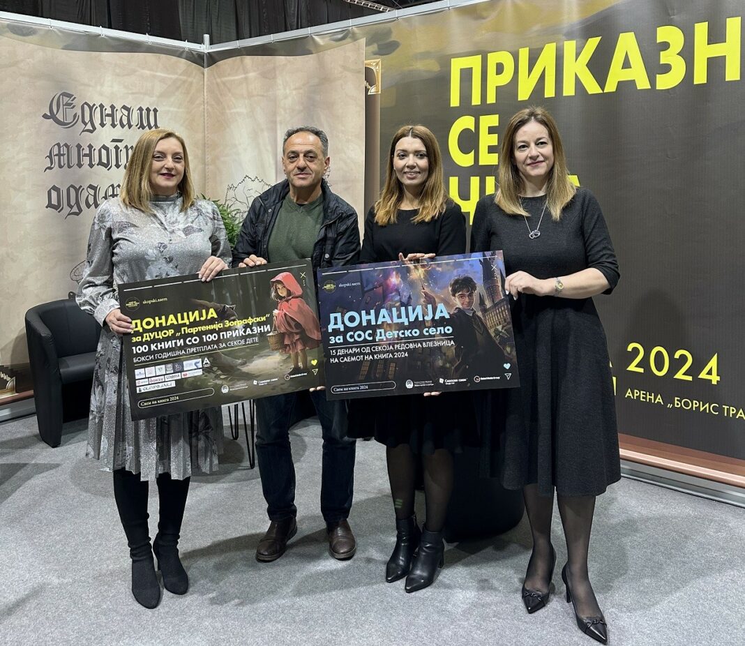 Оваа донација е продолжување на хуманитарната акција која се спроведува во текот на целиот Саем на книга 2024, преку која 15 денари од секоја продадена редовна влезница се одвојуваат за помош на СОС Детското село.