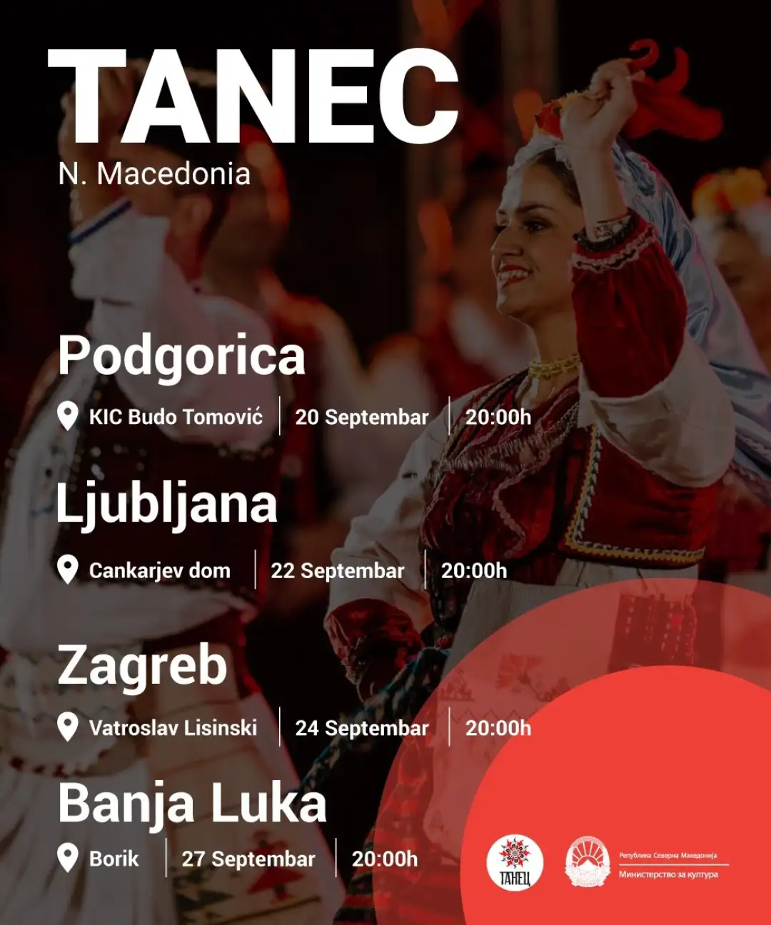 „Танец“ утре ќе настапи во КИЦ „Будо Томовиќ“ во Подгорица, в недела (22 септември) во „Цанкарјев дом“ во Љубљана, во вторник (24 септември) ќе гостува на сцената во „Ватрослав Лисински“ во Загреб и идниот петок (27 септември) во салата „Борик“ во Бања Лука.