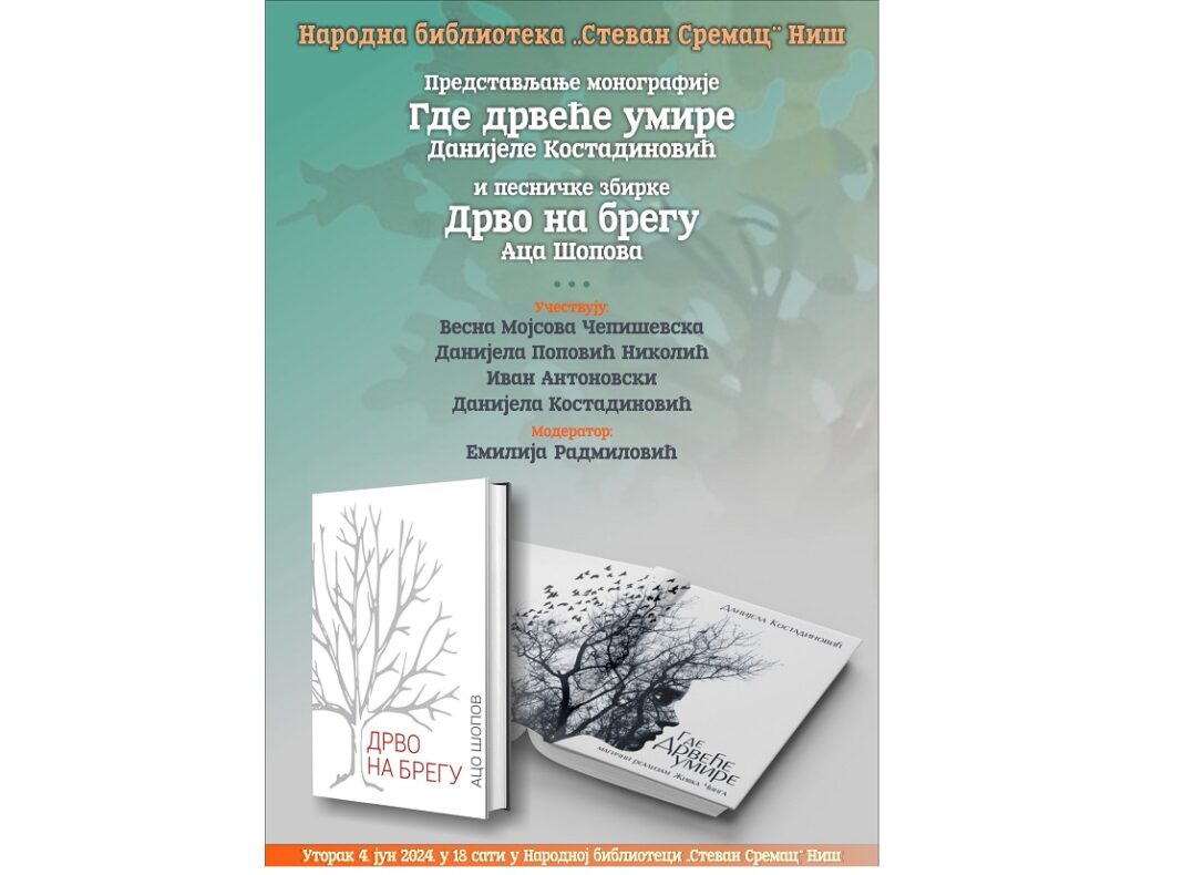 Книжевната вчера ќе биде посветена на две капитални дела објавени оваа година, а кои се однесуваат на современата македонска проза и поезија – и двете резултат од работата на д-р Данијела Костадиновиќ, која е професор по македонистика на нишкиот Филозофски факултет и истакнат афирматор на македонистиката. Првото дело е монографијата „Каде што дрвјата умираат: магичниот реализам на Живко Чинго“, авторско научно дело на Костадиновиќ, а второто дело е последната, аманетна книга на Ацо Шопов, „Дрво на ридот“, првпат објавена интегрално во одделно издание во препев, на друг јазик.