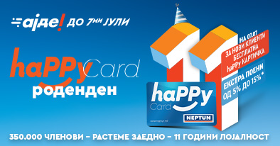 За новите членови – на 7-ми јули добијте бесплатна haPPyCard и веднаш вклучете се во системот на попусти, поени и награди.