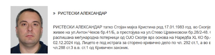 Мерката ќе започне да се применува од неговото пронаоѓање и лишување од слобода, а во меѓувреме по него ќе биде распишана потерница.