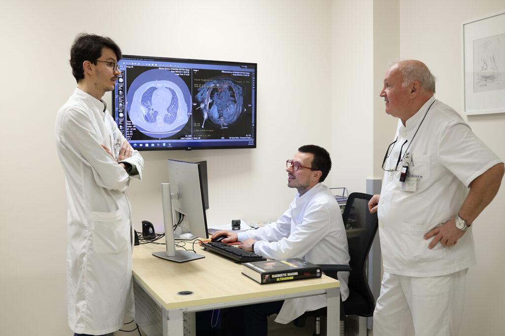 Одделот за интервентна радиологија, кој ги изведува сите процедури, е составен од високообучени експерти од областа на радиологијата, со акцент на интервентната радиологија и е целосно посветен на третманот на пациентите. Тимот е предводен од доц. д-р Александар Ѓорески, интервентен радиолог кој воедно е пионер во изведувањето на голем број интервентни радиолошки процедури во нашата земја.