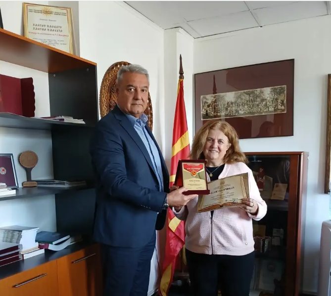 „Директорот Близнаковски за овој хуман подвиг на г-ѓа Татјана Гогоска и врачи благодарница, а за нејзината мајка, м-р Ленка Гогоска, постхумно додели плакета за донација на македонска литература наменета за иселеништво“, соопшти Агенцијата за иселеништво.