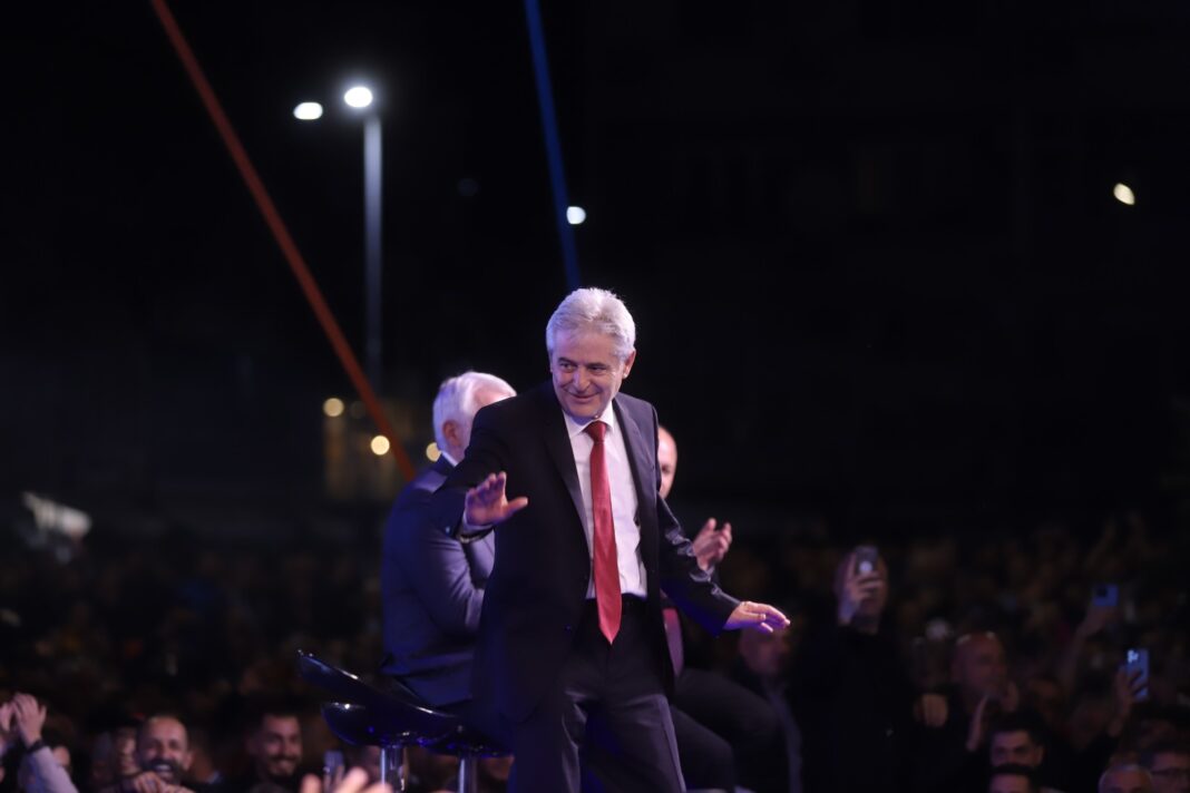 „Никогаш не сум излегол да кажам тоа што не можам да го направам, сме дале ветување дека оваа земја треба да биде полноправен член, оваа земја треба да има мир, треба да биде членка на ЕУ со поддршка на САД, исто како што влеговме во НАТО. Друга алтернатива нема. Залудни се силите што сакаат да не спречат. На 8 мај ќе треба да направите избор меѓу тие што прават историја или тие што не знаат два чекори напред да направат“, истакна Ахмети.