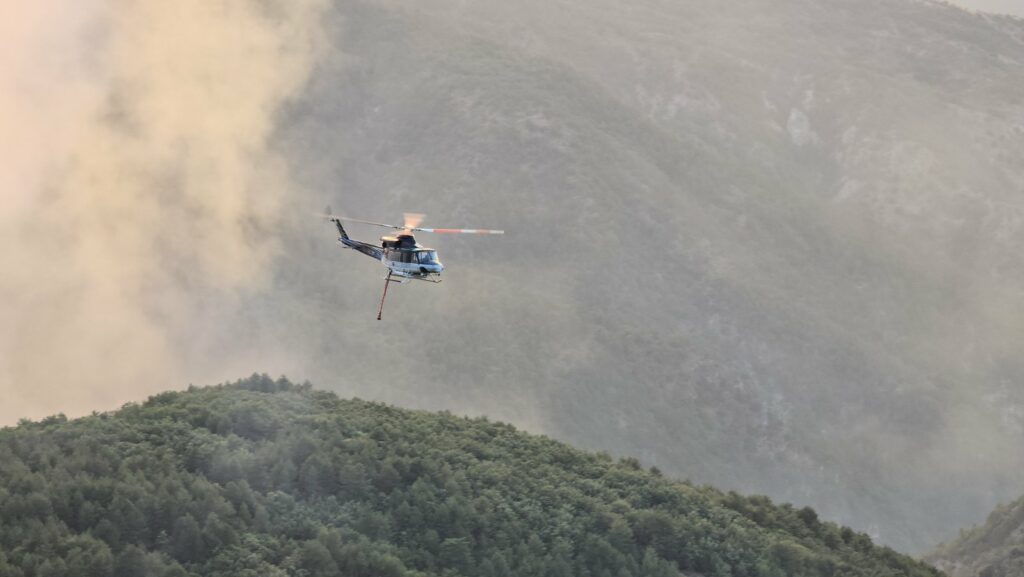 Активен е пожарот во ловиштето Јасен, Општина Македонски Брод каде гори мешана шума. Ниска вегетација гори кај селата Радуша и Дворце, Општина Сарај. Во Македонски Брод, кај селото Крапа, повторно гори ниска вегетација и нискостеблеста шума.