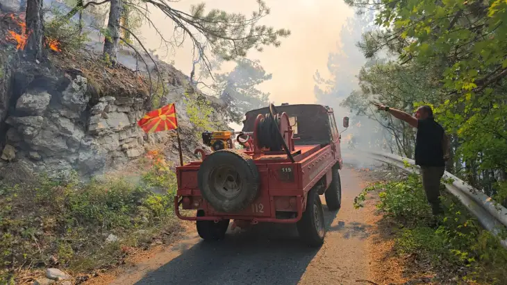 Потенцира дека борбата со огнот на моменти е ризична поради што сѐ уште не може да се воспостави контрола над овој шумски пожар кој се одвива на екстремно тежок терен.
