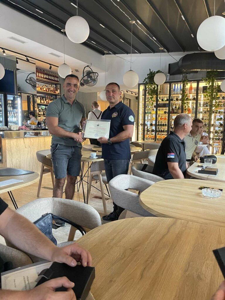 „На храбрите пилоти од Романија, Словенија, Хрватска, Србија и Црна Гора, кои ни помагаат во справување со огнената стихија, во знак на почит и благодарност за она што го прават за нашата земја, им доделив благодарници со пригоден подарок карактеристичен за Македонија“, изјави Ангелов.