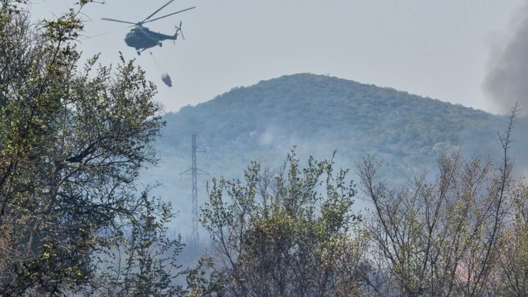 Во меѓувреме, од Центарот за управување со кризи (ЦУК) информираа дека на помош дошол хеликоптер кој полни вода од Дојранското езеро и го гаси пожарот.