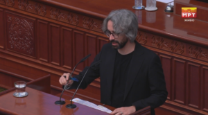 Потоа, пратеникот од Левица се осврна и на Законот за македонски јазик, со тврдење дека Гаши во Собранието го крши, па дури и не сака, како што нагласи, неговото име да биде преведено, односно напишано на кирилица.
