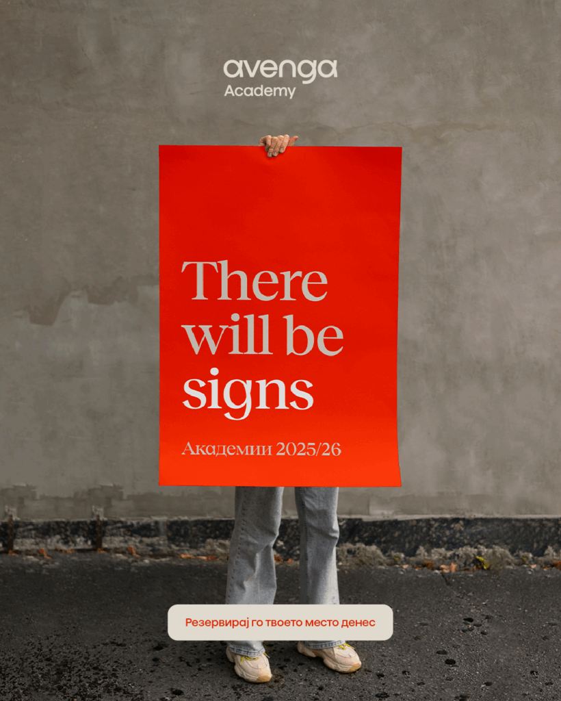 Под мотото „When I complete Avenga Academy, I won’t tell, but there will be signs“, академијата „Авенга“ ја лансира својата нова кампања посветена на студентите кои преку труд, знаење и истрајност ги градат своите кариери – без големи зборови, но со видливи резултати. Токму врз максимата „Делата зборуваат посилно од зборовите“ се потпираат новите комуникациски активности на едукативниот центар специјализиран во сферата на бизнисот и ИТ индустријата.
