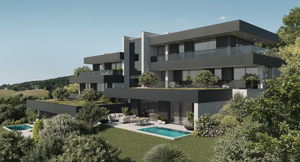 Green Hill Suites. Сместен во престижниот регион 1180/1190 Виена, проектот се простира на 1.352 м². Со инвестиција од 11,4 милиони евра, проектот се издвојува по модерна архитектура, загарантирана приватност и панорамски погледи кон градот.