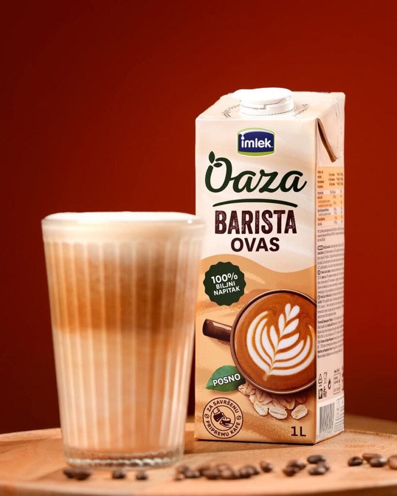 Имлек оаза бариста овес е создаден токму за ваква намена – лесно се пени, дава кремаста текстура и се вклопува со кафето без да го промени неговиот карактер. Затоа е погоден за подготовка на различни кафе-напитоци, како лате, капучино или макијато.