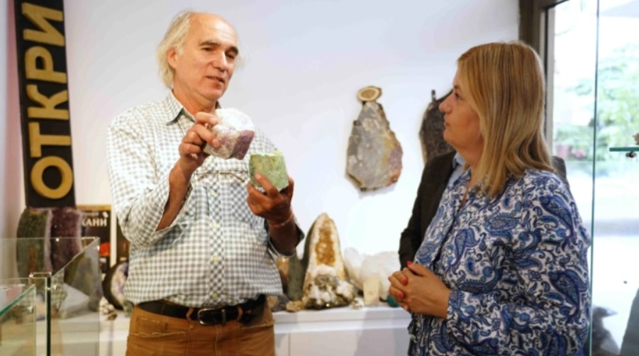 „Посетата беше збогатена со присуството на амбасадорот на Француската Република, Кристоф Ле Риголер, како и на Грегоар Егороф, претставник на Националниот музеј за природни науки во Париз. Егороф на галеријата и донесе ретки примероци на камења и минерали од Франција – меѓу кои и каменот со кој се изградени катедралата Нотр Дам и Елисејската палата – а како автор на книга за минералите на Европа, најави дека размислува во следното издание да го вклучи и македонскиот рубин“, се вели во соопштението.