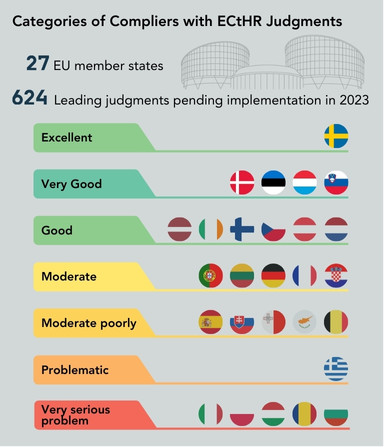 Според анализата на ДРИ, судовите во земјите кои не ги почитуваат пресудите од Стразбур, се главните виновници за оваа ситуација.