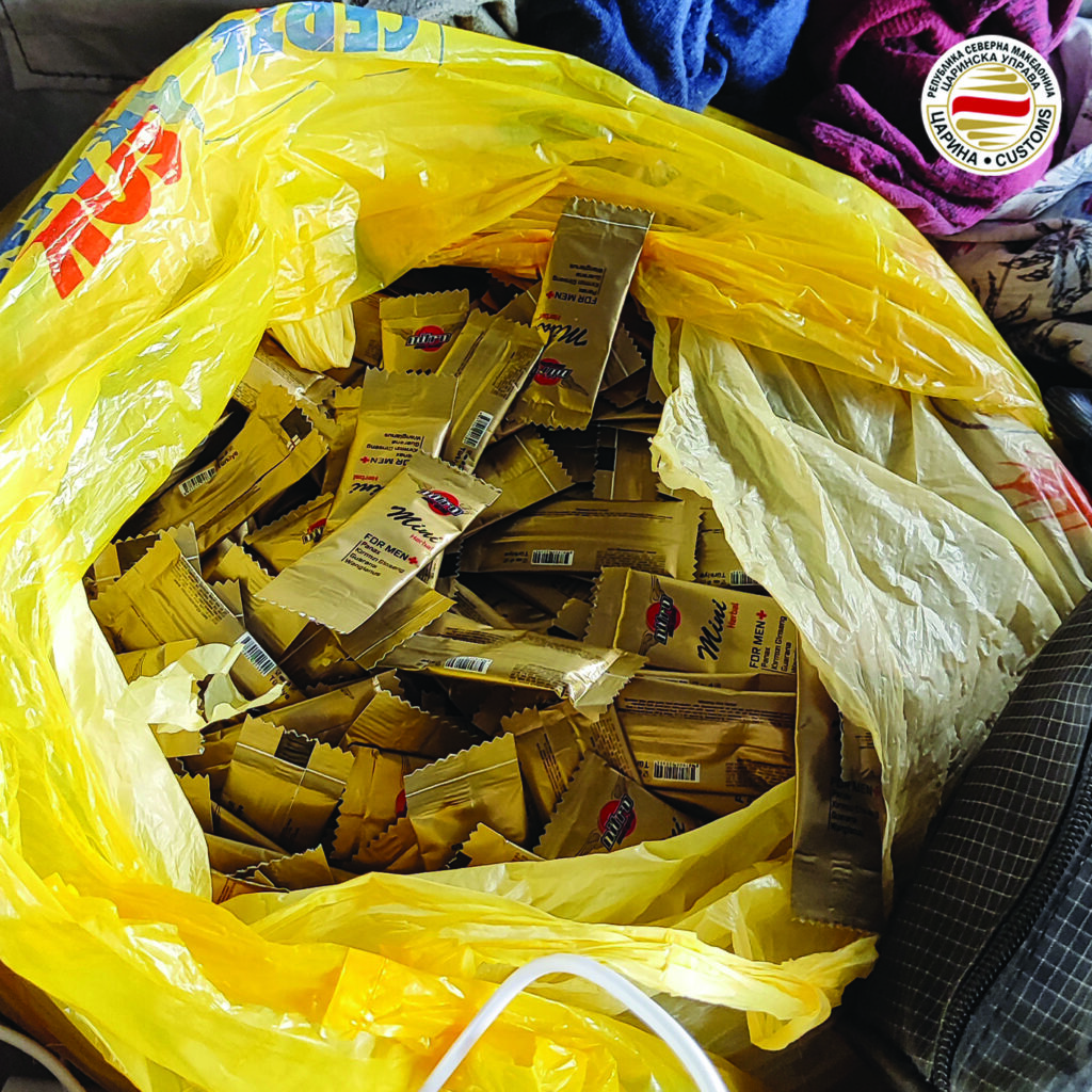 Спречен е и обид за шверц на 3.150 ќесички маџун со додатоци, откако патник се обидел истите преку граничниот премин Богородица нелагално да ги внесе во државата. Лицето кое патувало со автомобил на прашање дали има нешто да пријави за царина одговорило дека нема ништо за пријавување. Поради сомневање возилото е селектирано за детален преглед при што во багажниот простор во три патнички куфери помеѓу личните предмети, е пронајдена непријавената стока.