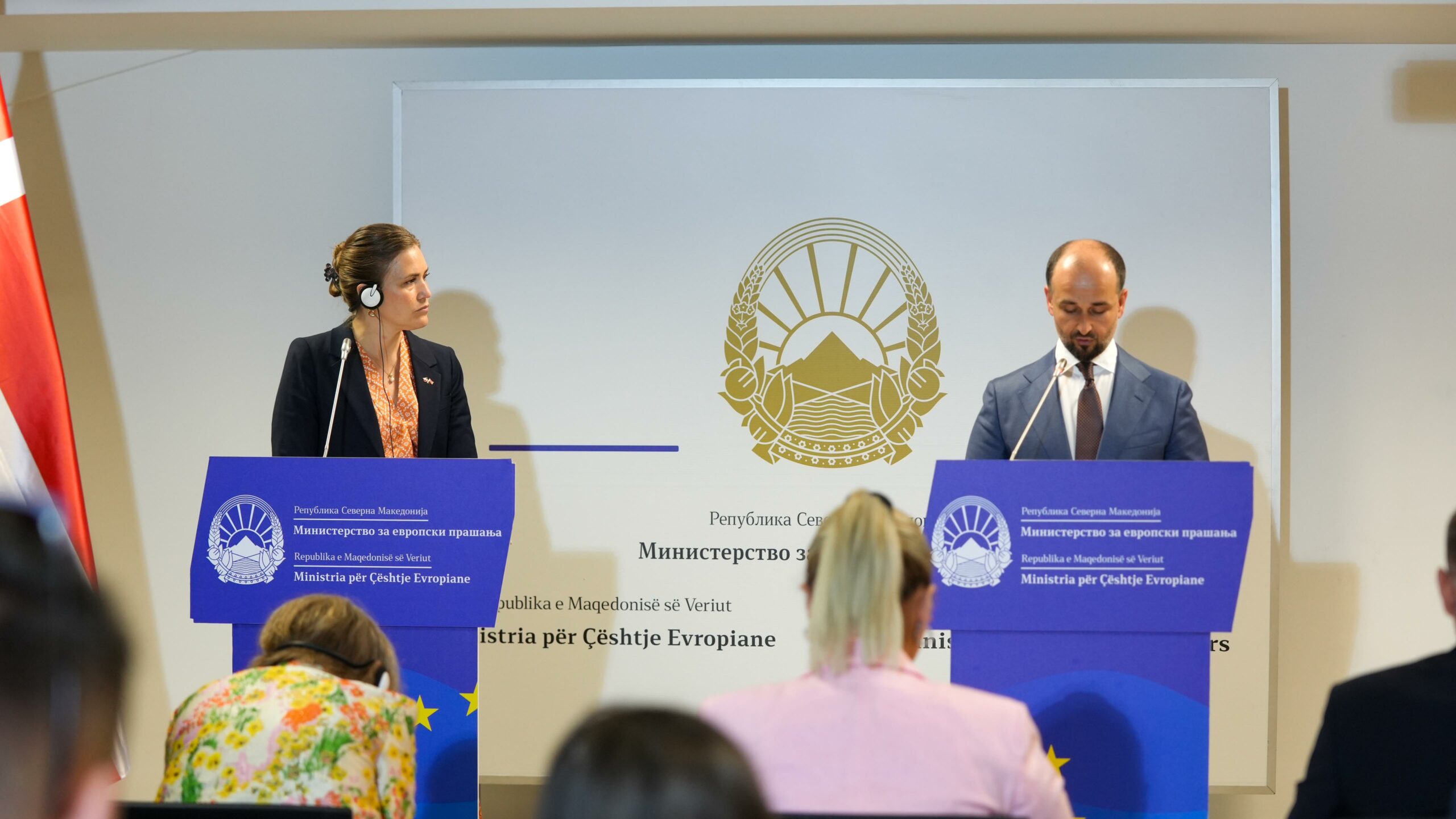 „Моментумот за проширување апсолутно е тука и веќе сме негови сведоци, направен е прогрес и за Украина и за Молдавија, и сега со Албанија отвораме два нови кластера. Еден сега, еден на есен, исто така имаме напредок и кај Црна Гора, кој не се случуваше долго време. Искрено да кажем дека моментумот е тука и ве молам да го зграпчите. И сега со нашето претстојно претседателство со ЕУ морам да ви кажам дека ние не можеме самостојно ова да го туркаме, ние сме тука конструктивно да работиме со вас, со Македонија за да можеме заднички да видиме каде можеме да постигнеме напредок, во кои делови можеме да го оствариме напредокот“, истакна данската министерка, додавајќи дека е видливо дека земјава има остварено голем напредок на патот до ЕУ.