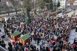 Пристигнувањето на Дедо Мраз е дел од дневната програма на осумдневниот „Новогодишен базар 2023″ што се реализира од 22 месецов.