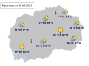 Во наредните денови, според УХМР, ќе продолжи периодот на сончево и многу топло време со дневна температура која насекаде ќе биде над 30 степени Целзиусови, а наместа ќе надминува 40 степени поради што до крајот на следната работна седмица ќе биде активирано портокалово ниво за опасност од високи температури. Во недела во попладневните часови во западните делови ќе има локална појава на пороен дожд и грмежи.