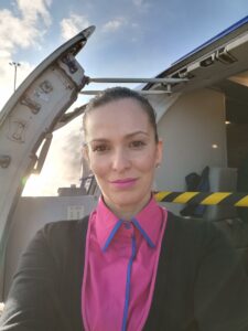 Тања Антиќ, кабински екипаж и тренер за прва помош во Визер: Кога бев дете, мајка ми имаше канцелариска работа како менаџер во база на една македонска авиокомпанија, па јас пораснав со луѓе од оваа индустрија. Желбата беше секогаш присутна.
