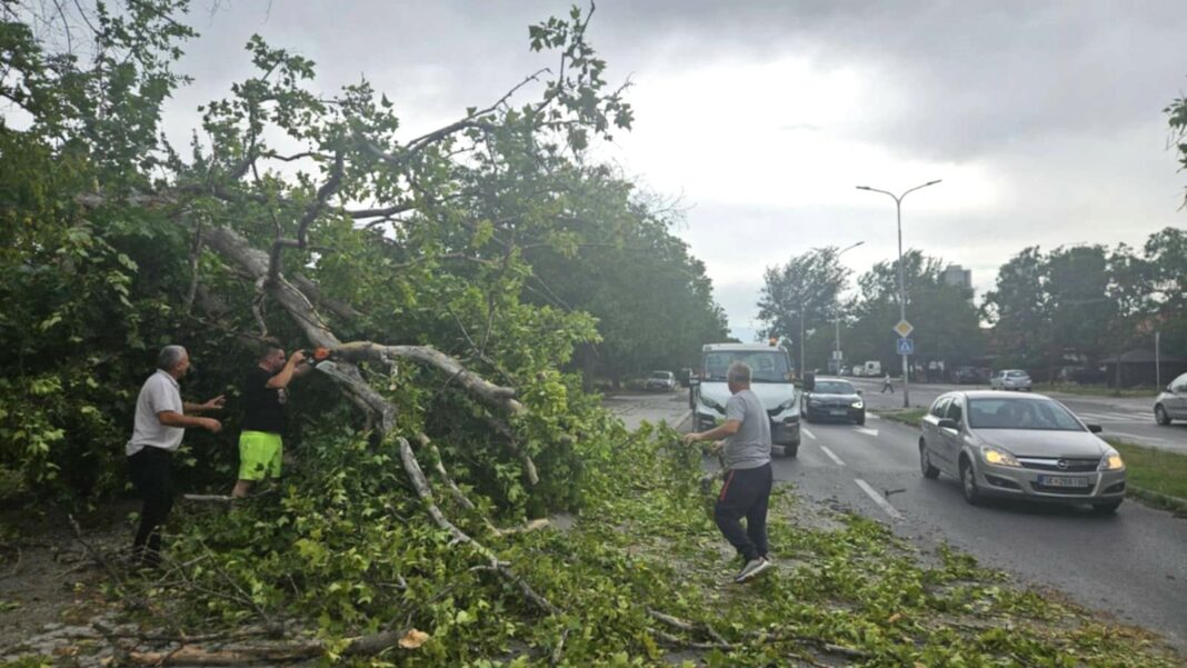 На булевар „Партизански одреди“ дрво паднало врз повеќе паркирани автомобили, а во дворот на градинката „Орце Николов“ на ул. Драгиша Мишовиќ, друго дрво ја оштетило едно возило.