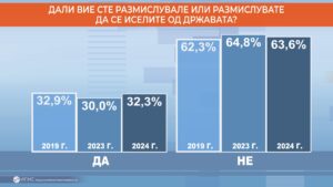 Сепак, 52,7% од сите анкетирани граѓани рекле дека во наредните 5 години нема шанси да се преселат од Македонија додека сигурни дека ќе си заминат во истиот период се 11,5% од анкетираните. Поредбата со анкетите од претходните години не покажува некои значителни отстапувања.