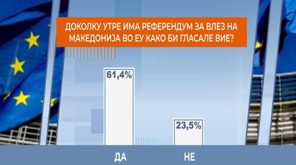Поддршката за ЕУ е повисока кај испитаниците Албанци од кои над 77 проценти даваат позитивен одговор додека кај испитаниците Македонци позитивен одговор даваат 55 проценти.