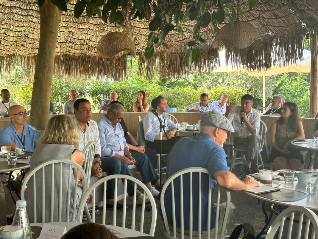 На панел дискусијата посветена на демократските предизвици во Медитеранот, заедно со Димитров беа и албанскиот државен министер за врски со Парламентот, Тулант Бала, Мехди Јома, поранешниот премиер на Тунис, Амр Муса, поранешниот генерален секретар на Арапската лига, професорот по политички науки на Универзитетот Џорџ Вашингтон, Харис Милонас, Сонер Чапгатај од Вашингтон Институтот и Јахја Саид од Лондонската школа за економија.