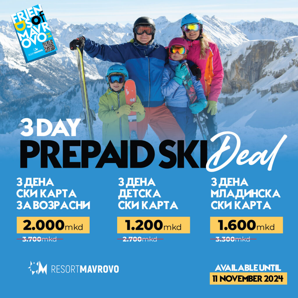 За сезонава се нудат и тридневните (три последователни дена) pre-paid ски карти за возрасни, млади и деца со голем попуст.