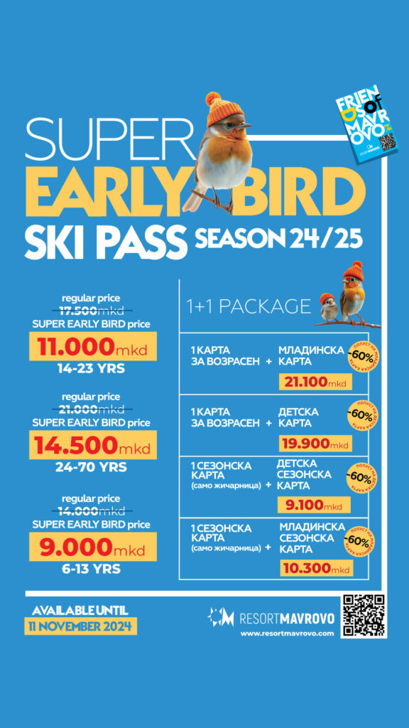 „Како и минатата година, сезонски карти од Ресорт Маврово повторно ќе важат три последователни дена во скијачките центри – Копаоник, Златибор, Стара Планина, Колашин и Бјелашница. За секој што поседува сезонска карта за скијање обезбедуваме и 10% попуст во Маврово и Скопје кај „Friends of Mavrovo“. На овој начин, обезбедуваме сериозни заштеди за децата и за семејствата, надевајќи се дека што повеќе деца и млади ќе скијаат во новата сезона“, вели Огњан Циговски од Ресорт Маврово.