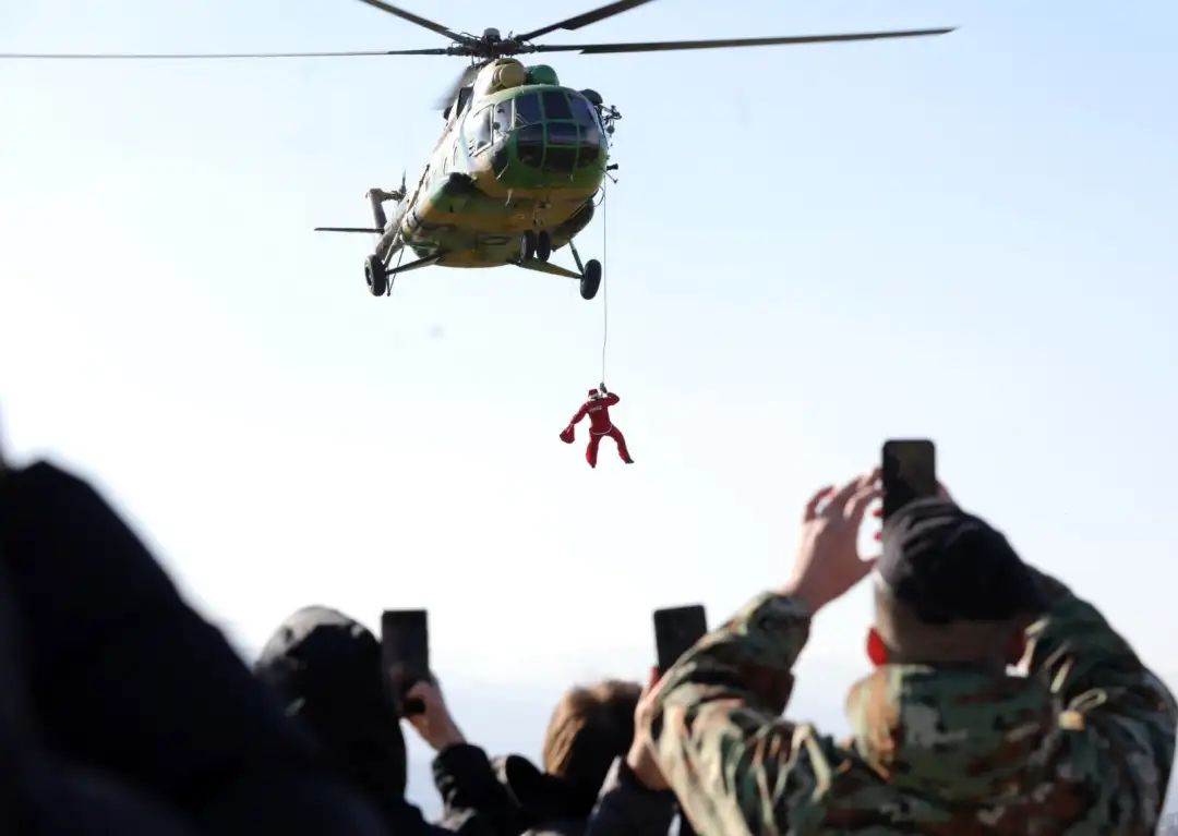 Традиционално, и оваа година, дечињата го пречекаа Дедо Мраз со хеликоптер, на тренинг-центарот за пилоти во касарната „Страшо Пинџур“ во Петровец.
