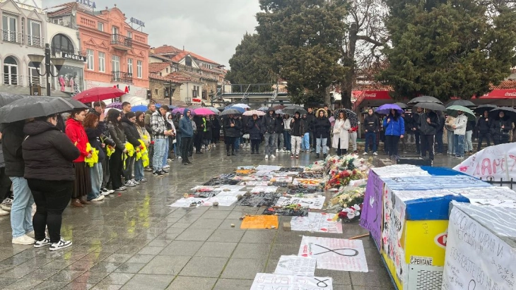 Граѓани на Охрид на дождливо време одадоа почит на настраданите во кочанската трагедија, искажувајќи поддршка на нивните и на семејствата на сите повредени во најголемата несреќа во историјата на независната македонска држава.