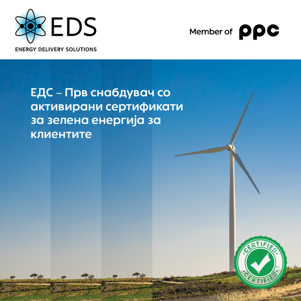 „Во септември 2025, ЕДС стана првата компанија во Северна Македонија која изврши активирање на овие сертификати во име на краен корисник. Со ова, крајниот корисник може полноважно во своето ESG известување да ги објави количините чиста енергија. Гаранција за потекло е електронски документ (пазарен инструмент) кој докажува дека определена количина од потрошената енергија е произведена од обновливи извори на енергија. Секоја издадена гаранција за потекло е со стандардна големина од 1 MWh електрична енергија произведена од обновливи извори. За ЕДС снабдувањето со електрична енергија не е само услуга – тоа е ветување. Со активирањето на првите сертификати за зелена енергија ја потврдуваме нашата улога како сигурен и иновативен партнер кој им помага на компаниите да растат одржливо и транспарентно,“ велат од ЕДС.