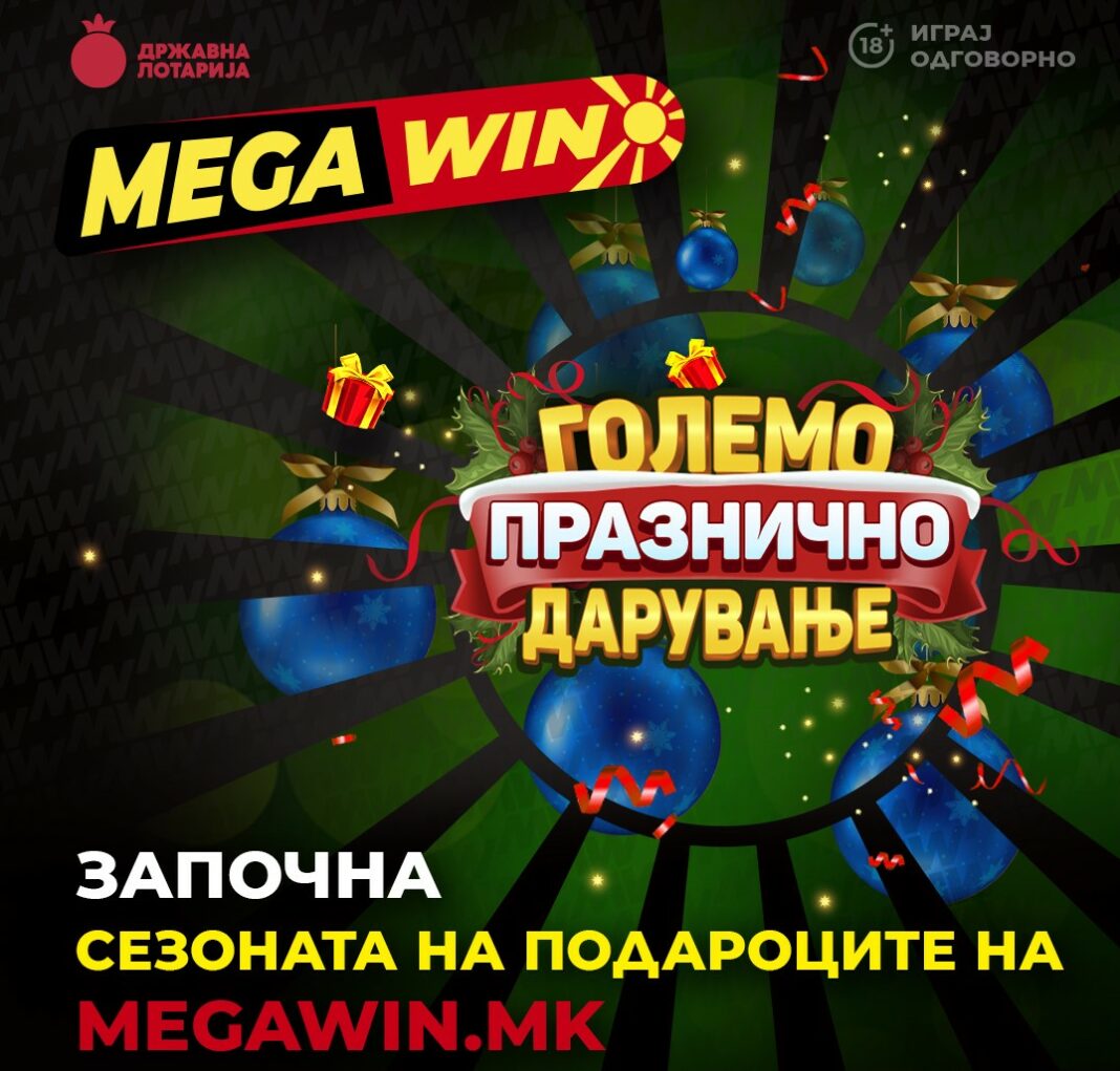 Интернет-платформата www.megawin.mk ја потврди новата стратегија на Државна лотарија. Со неа ќе бидат поврзани многу нови изненадувања, подароци, награди добивки и многу забава, кампањата „Празнично дарување“ е едно од изненадувањата што ќе внесат мега адреналин и многу забава во овие празници, но и воопшто во светот на игрите на Државна лотарија.