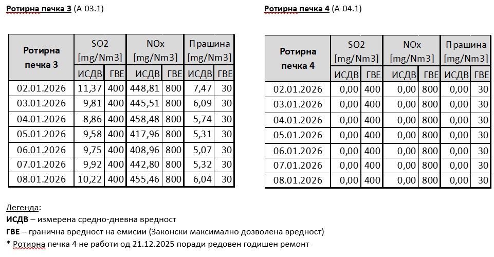 Работењето на компанијата е постојано следено од страна на Државниот инспекторат за животна средина. Кога печките на Титан Усје работат, тие работат 24 часа. Фабриката поради технолошки и деловни причини работи во текот на целото деноноќие. Печките или работат континуирано (24 часа) или не работат. Поради поголемата сезонска побарувачка на цемент, производството е поголемо во текот на летните месеци, отколку во зима“, се вели во соопштението на компанијата.