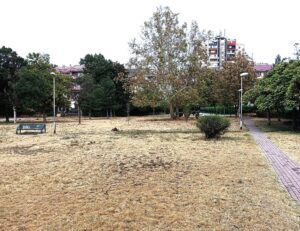 Оваа трева и овие дрвја во најзелените мали паркови во Ново Лисиче во минатите августи беа зелени. Не дека летото било поблаго или било дождливо. Прскалки прскаа и наутро и навечер.