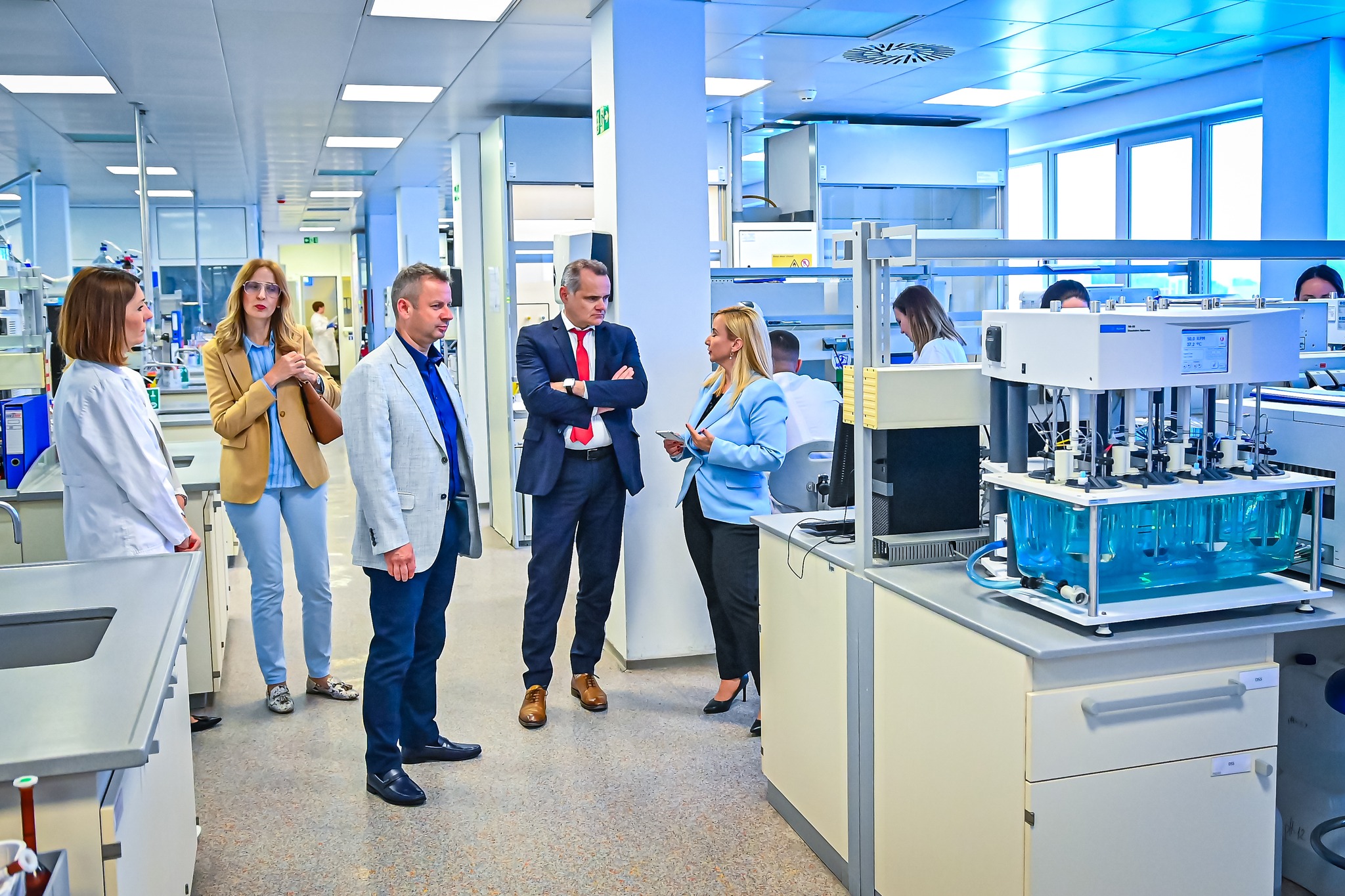Официјалната работна посета на француската дипломатска делегација вклучи и обиколка на производствените капацитети во сегментот ПЦ ‘Фармација’, како и посета на компанискиот Институт за истражување и развој, каде беа презентирани современите технолошки процеси и иновативниот пристап во развојот на нови фармацевтски формулации и производи.
