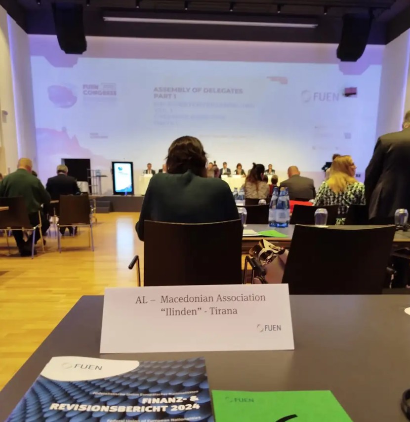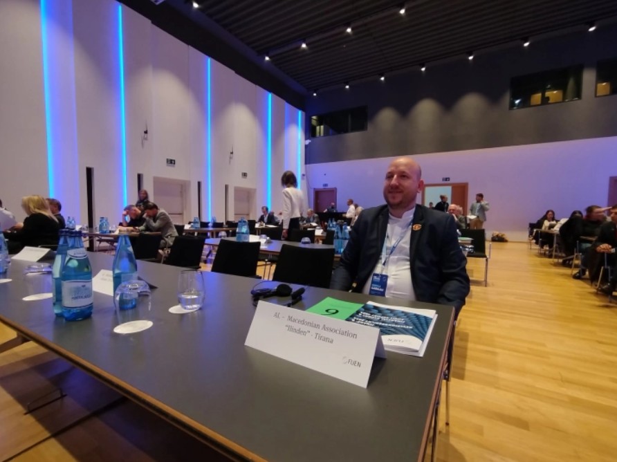 МД “Илинден” десет години е рамноправна членка на ФУЕН, редовно учествува на конгреси на кои поднесува резолуции за полжбата и правата на македонското малцинство во Албанија.