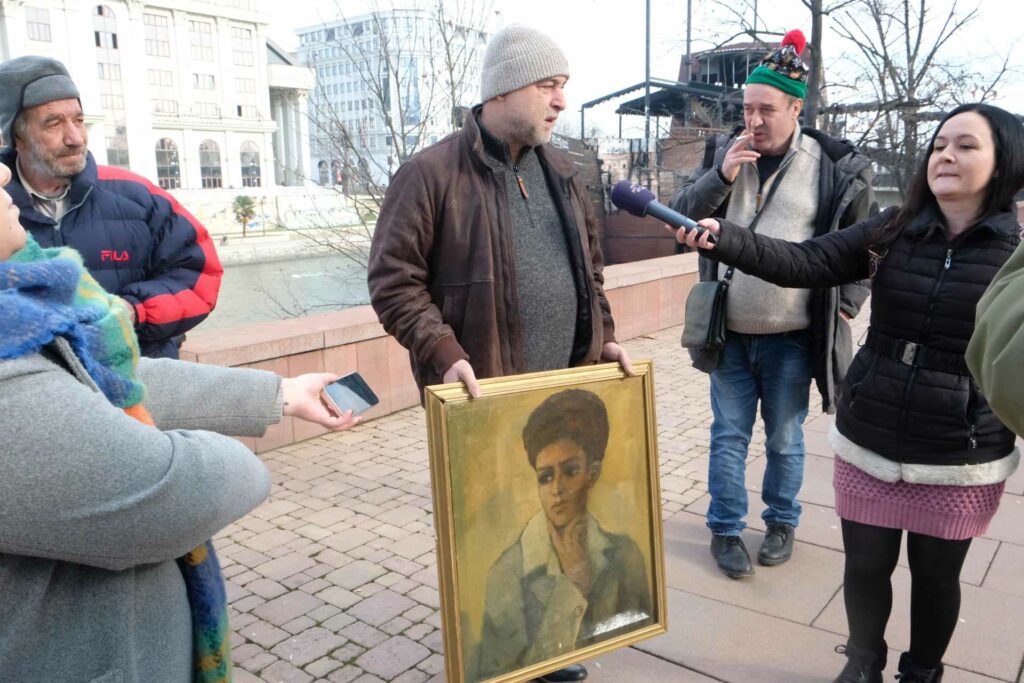 Десетината присутни носеа транспарент „Македонија на Македонците“, испишан на бугарски јазик.