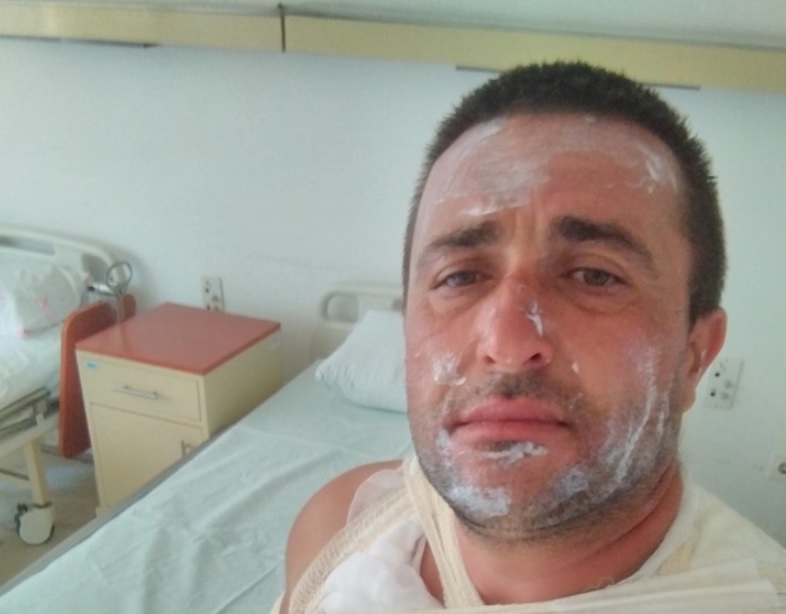 Со повреди на раката и ногата, лицето и увото, бил преземен од Итна медицинска помош и однесен на Клиниката за пластична хирургија.