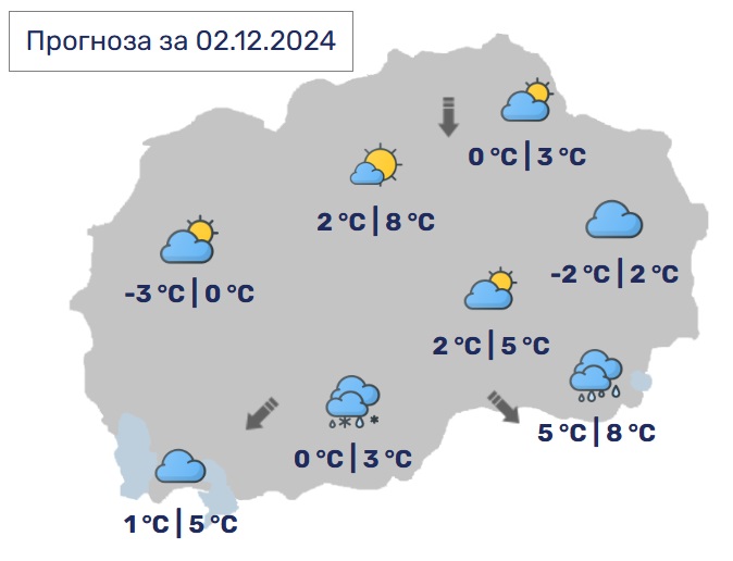 Во Скопје претпладне облачно, преку денот тивко, а облачноста ќе се намалува.
