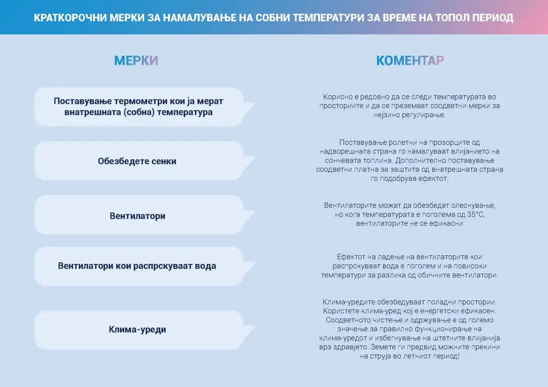 Од ИЈЗ додаваат и да се информираат семејството, пријателите и соседите за препораките и мерките за заштита од топлото време.