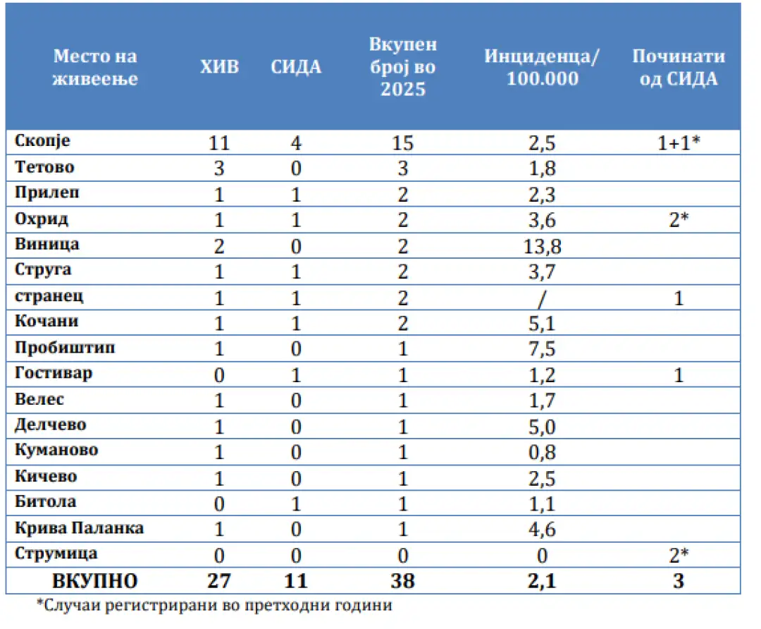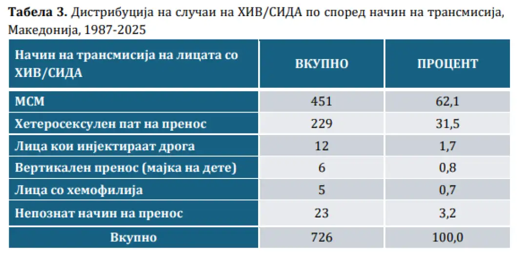 ИЈЗ нагласува дека Македонија е земја со ниска преваленца на ХИВ, од 1987 до 2025 се регистрирани 726 случаи на ХИВ/СИДА, но во последните години се бележи нагорен тренд, 32 отсто од сите случаи се регистрирани во последните пет години.
