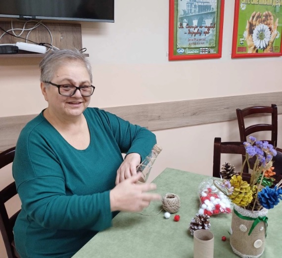 Сосема случајно дознала дека во рамките на Црвениот крст Чаир има Дневен центар за здраво стареење и таму оди скоро секој ден. „Имаме креативни работилници, работилници за шиење и плетење. Изработките се продаваат на хуманитарни базари, се организираат разни предавања, гледање филмови, разни игри, имаме курс по англиски… Кога е убаво времето, најчесто одам на Гази Баба да пропешачам…“, раскажува таа за своето сегашно секојдневие во кое секогаш кога може внесува ведрина и помага.