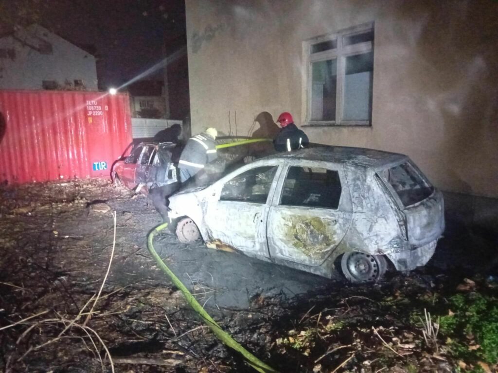 Според информацијата, во гаснењето на запалените возила интервенирале со едно против пожарно возило и тројца пожарникари.